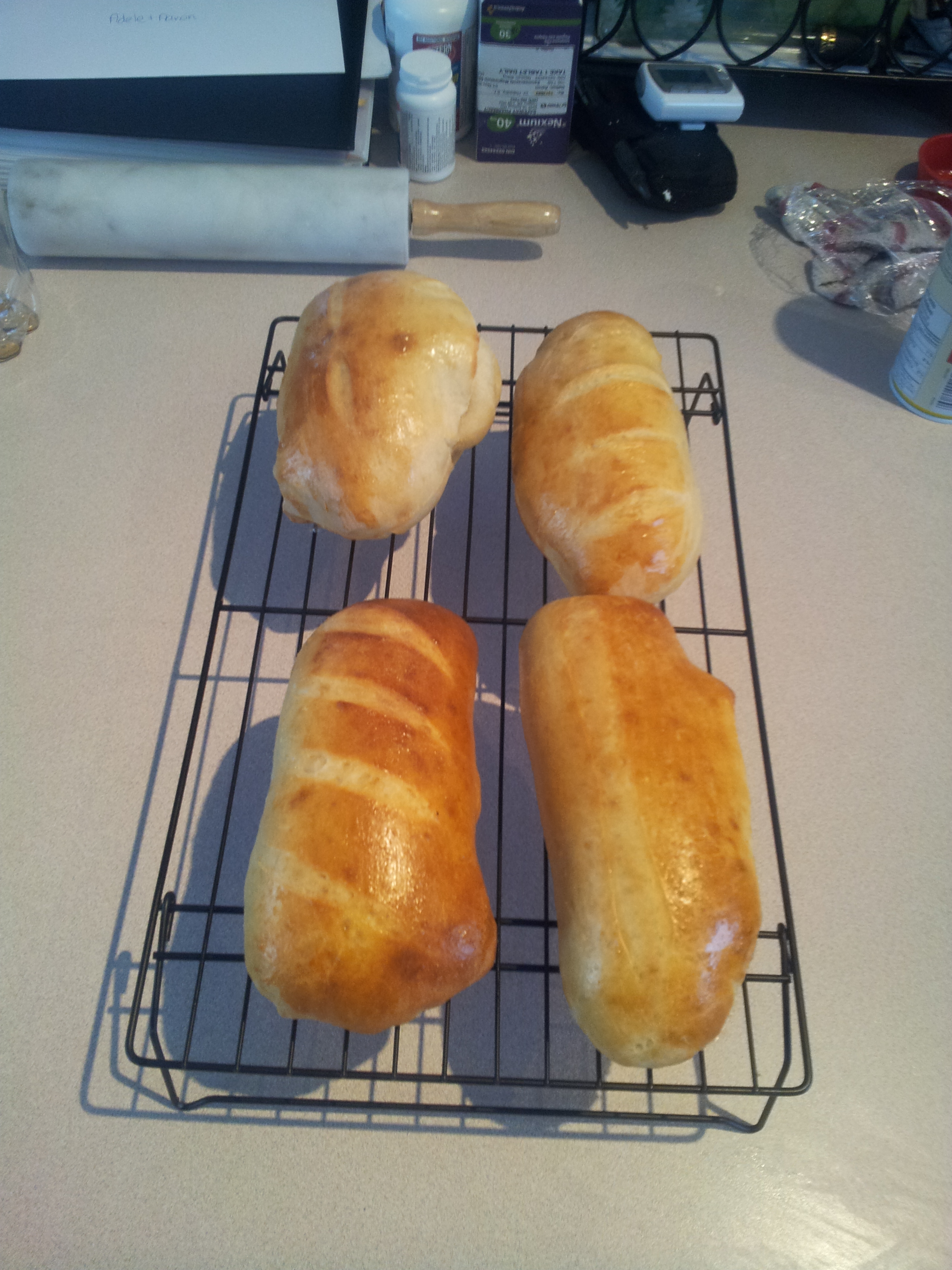 Note: I omitted brioche and pizza dough from this post. I plan on making brioche tonight. If it works better this time, I’ll post about it. I also plan on making pizza for dinner. This time I’ll try to get pictures before we devour it. Stay tuned!