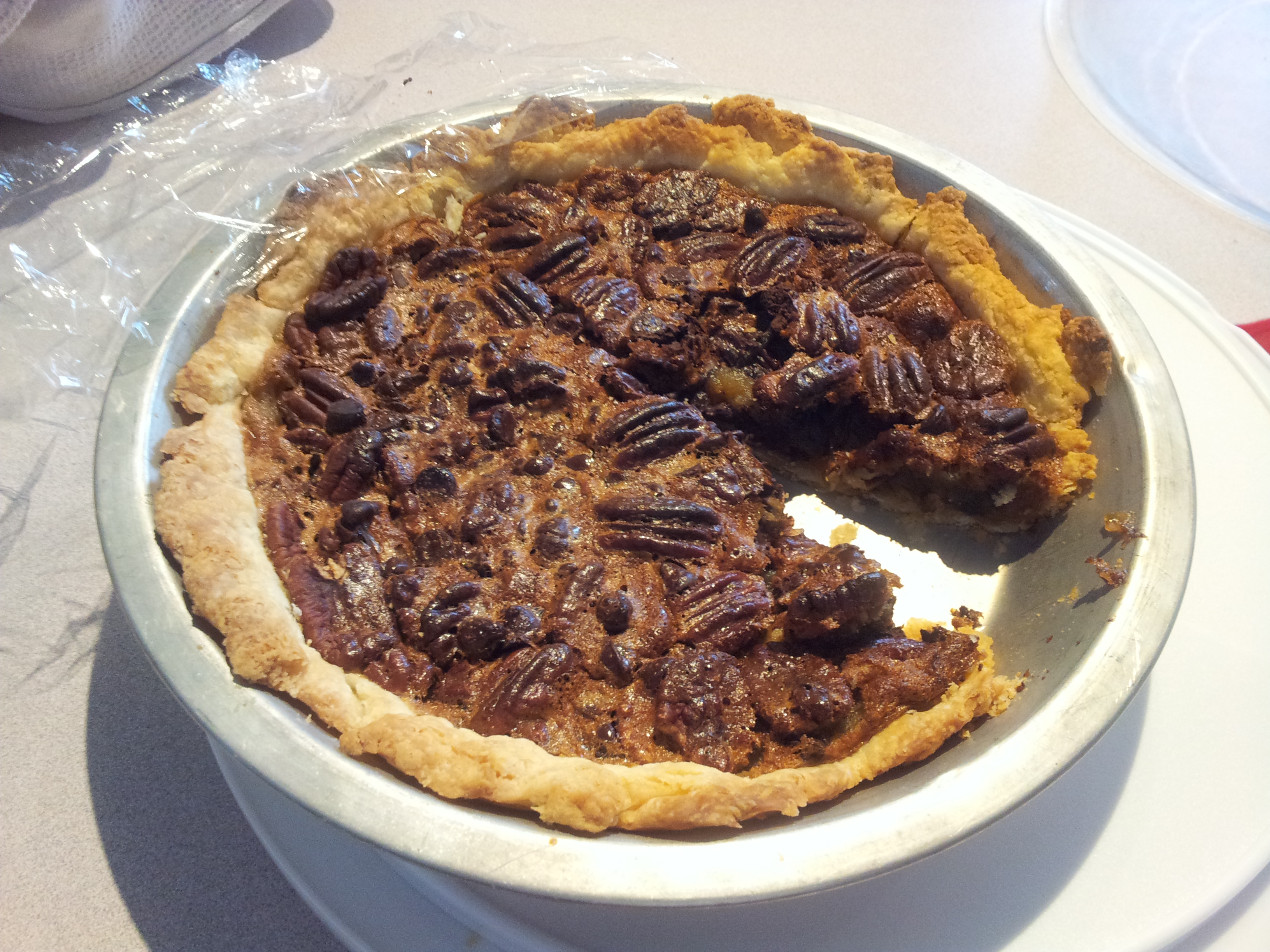 Final verdict: I’m not a huge pecan pie fan, but Adele said it was better than most. We’ll see what she thinks as she eats more of it. I’m not sure if this pie dough is ideal, but it worked. It should be easy to make these into tarts. Just watch your temperature and baking time.