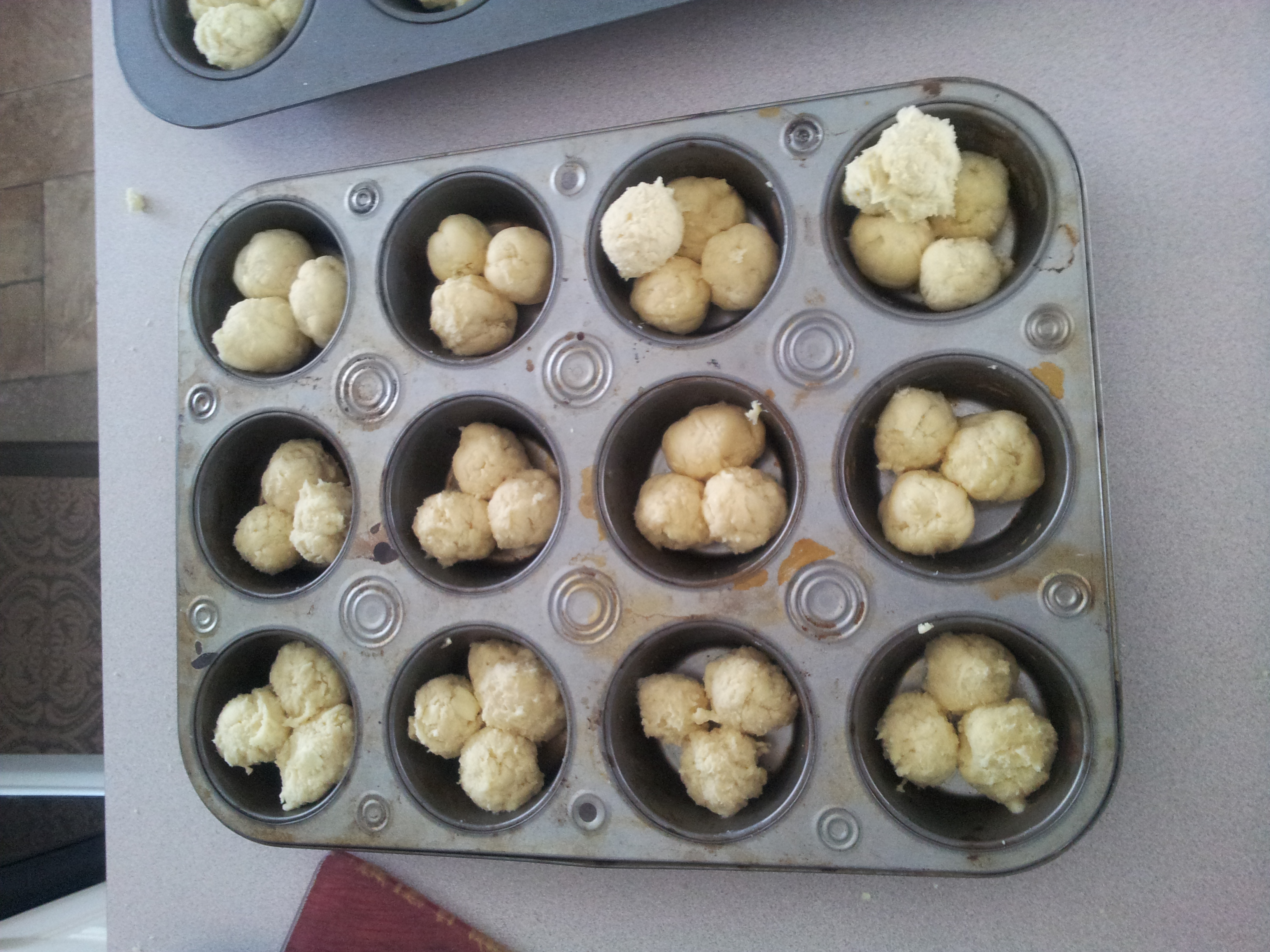 The book goes into all sorts of different ways to make rolls. I went with the cloverleaf rolls, where you make little balls of dough and put three or four in a muffin tin. As they rise and bake, you get these great pull-apart rolls.