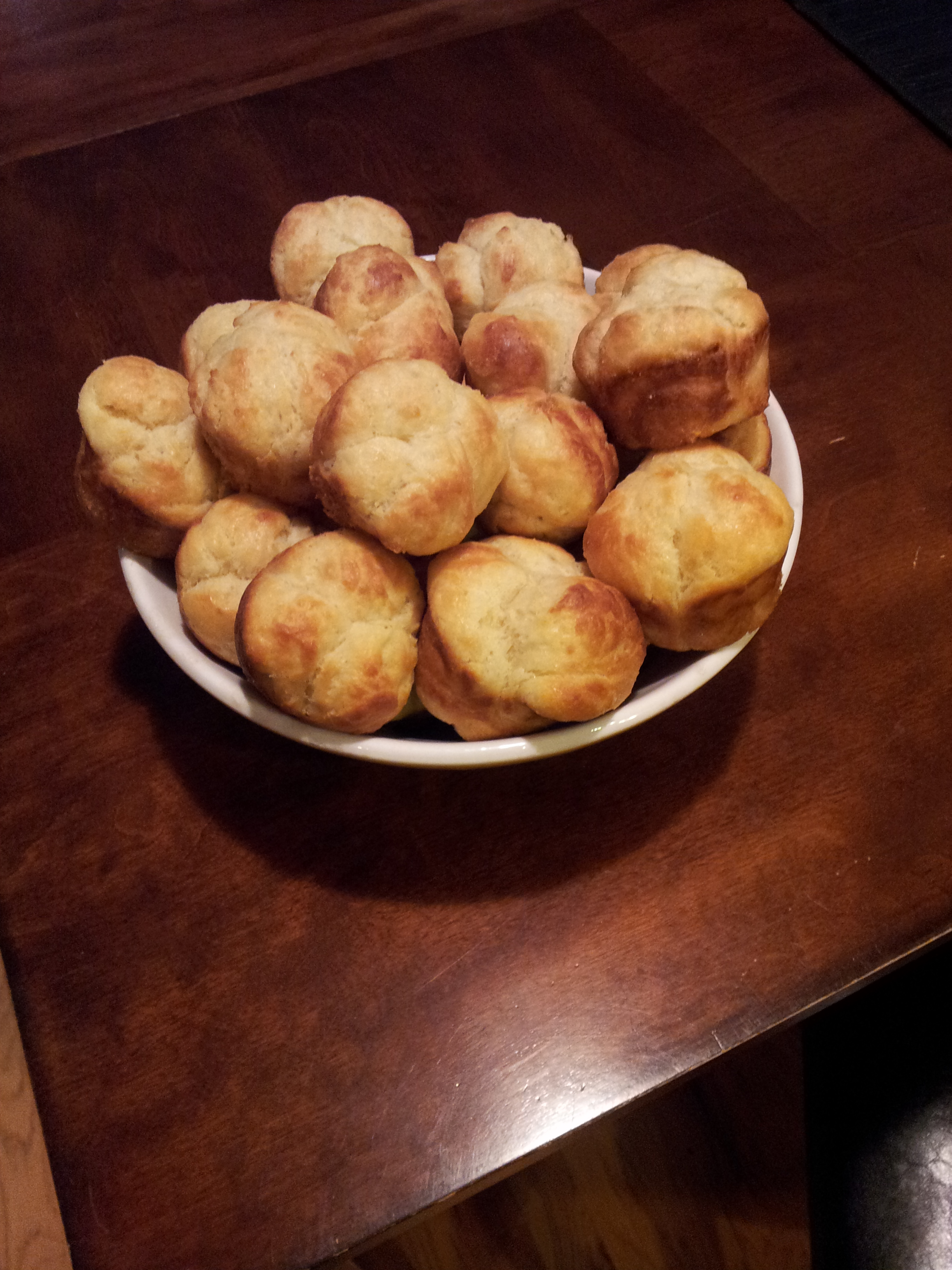 We had a family dinner and I said I would bring the rolls. My very first attempt at brioche was an unmitigated failure. I got zero rise and ended up with a really dense egg-bread. This time I increased the yeast a little to compensate for the higher elevation, and it worked! Because I had never made rolls with this recipe before, I doubled it. It turns out the base recipe makes just over a dozen cloverleaf-style rolls.